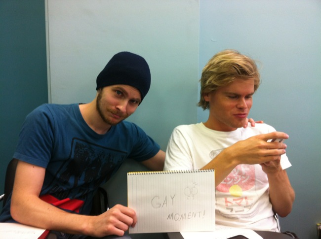 Si, Fredrik es todo un personaje jeje, seguramente el piense lo mismo de mi 😛 No solo estamos en el mismo país, somos vecinos y vamos a la misma escuela y la misma clase… pero si nada que ver 😛