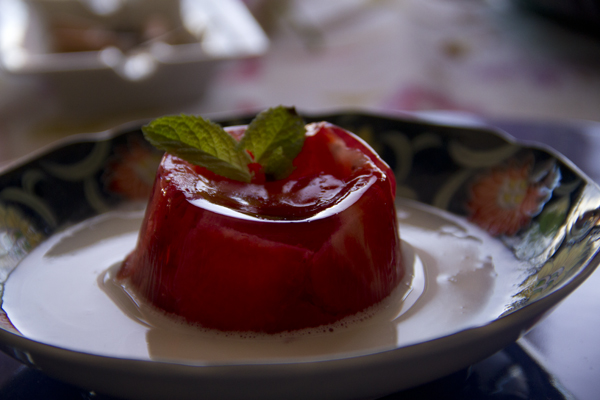 Gelatina de fresas y azahar a la menta