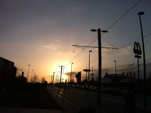 Bonito amanecer morado en Tokyo. Lo chungo es que era un día entre diario y a las pocas horas tenía clase… pero weno :P