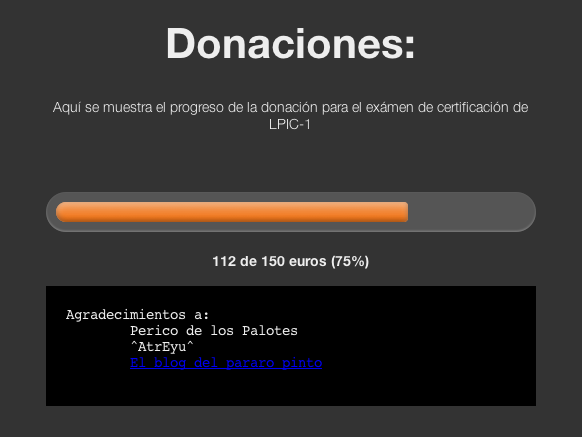 Por cierto la barra de progreso la podréis ver en la página de donaciones :) De momento la página esta a cero, pero os dejo una captura de como espero que se vea dentro de bien poco: