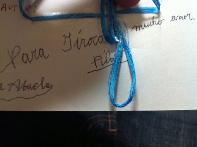 Tras la triste noticia, esta fue una de las cosas que primero mire y que tengo pegado en un lado de mi escritorio. Una nota manuscrita de mi abuela en la que le mandaba un regalito a mi chica.