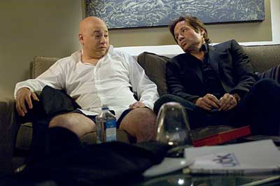 Así por encima David Duchovny (si el de Expediente X) interpreta a Hank Moody un escritor borracho, mujeriego, drogadicto, pero a su forma de ser un buen tio. En realidad un cabrón al que es fácil cogerle cariño. Tienen bastante peso en la serie regularmente su mujer Karen, su hija Becca, su amigo Charlie Runkle (un crack!) y su mujer Marci Runkle (me pone de los nervios esta tía…). Además de estos cada temporada tenemos un grupo de personajes que va variando que le aportan frescura y situaciones novedosas con las que partirte de risa con desfachatez de Hank,