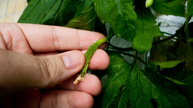 Estos son todos los frutos pequeños que he arrancado hoy. Cada día arrancamos entre 5 y 10 nuevos. Esta vez fueron unos cuantos porque al fijarme más al hacer las fotos encontré más y es que salen por todos lados!